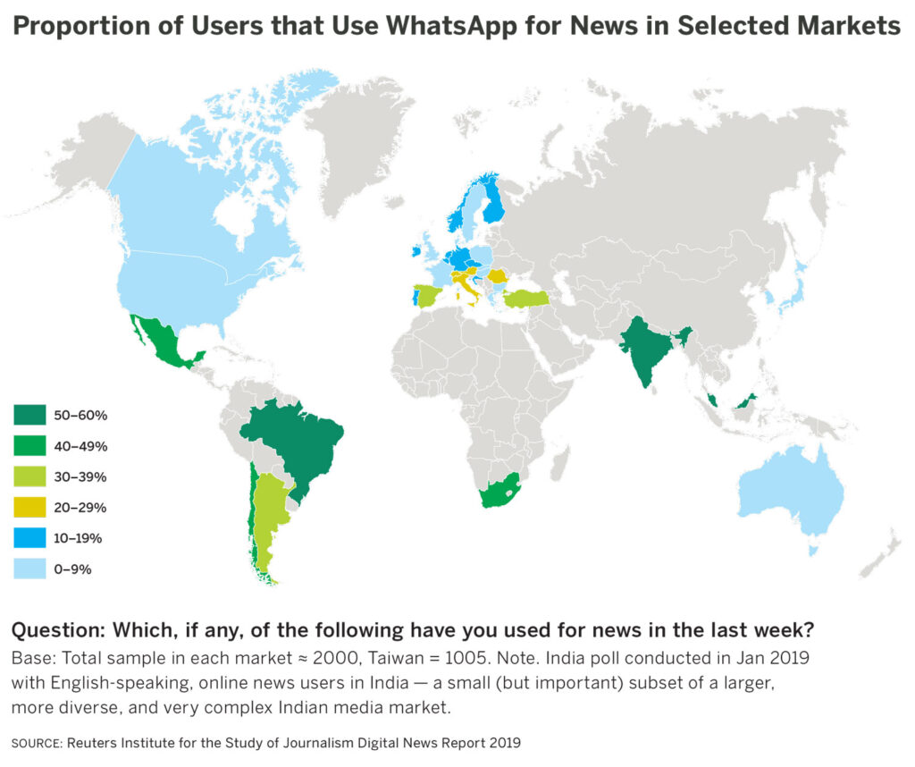 - Laura Oliver, “How publishers are engaging new audiences on messaging apps in the Global South,” Reuters Institute for the Study of Journalism, March 2, 2021, https://reutersinstitute.politics.ox.ac.uk/risj-review/how-publishers-are-engaging-new-audiences-messaging-apps-global-south.